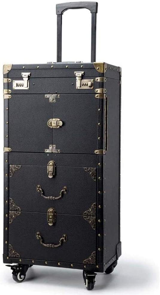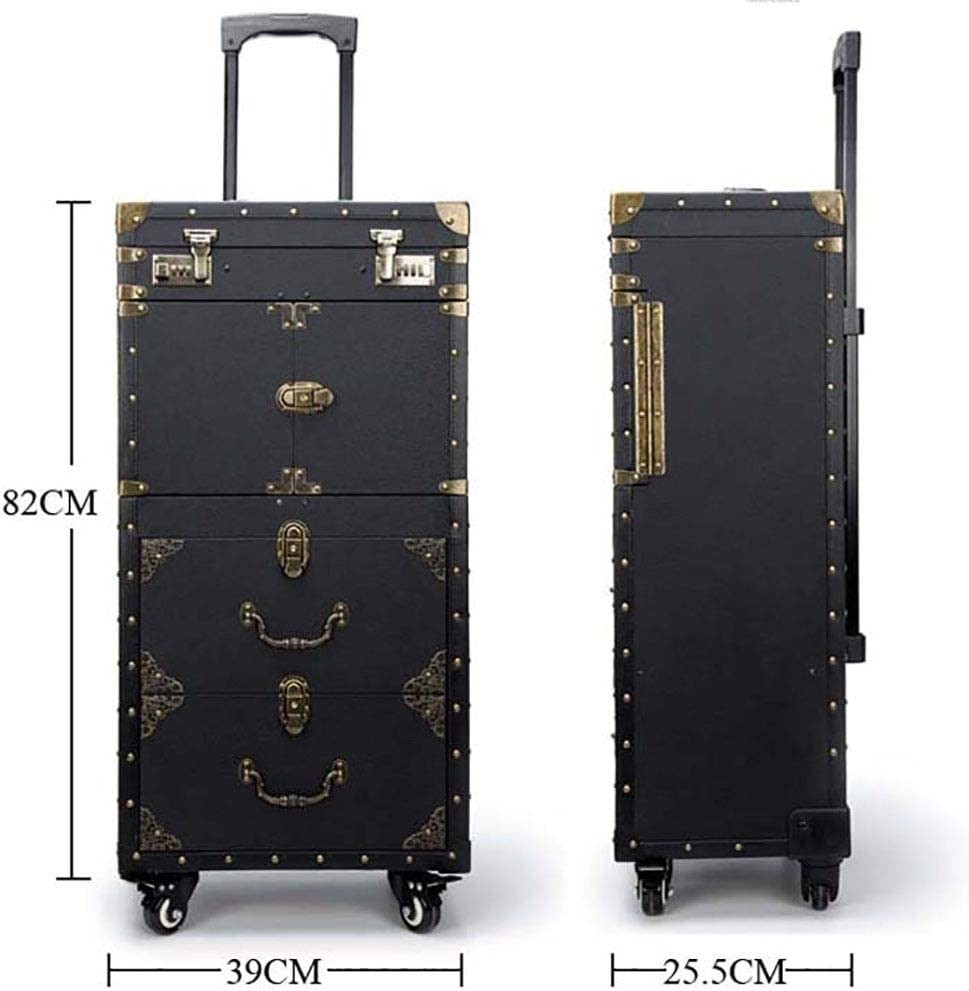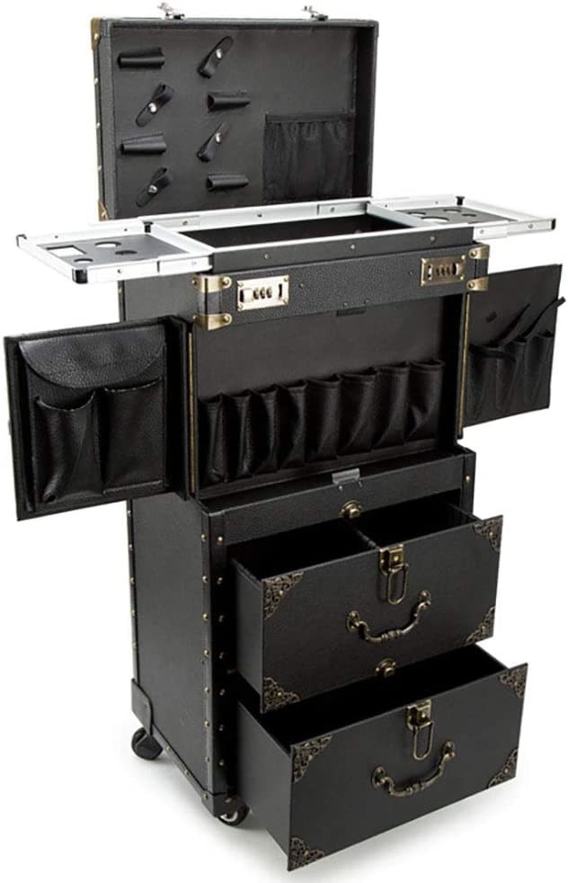 ASCASE Rolling Lockable Makeup Train Case Hairdressing Trolley Stylist Beauty Salon Cosmetic Luggage Travel Organizer Tool Box with Hair Dryer Holder