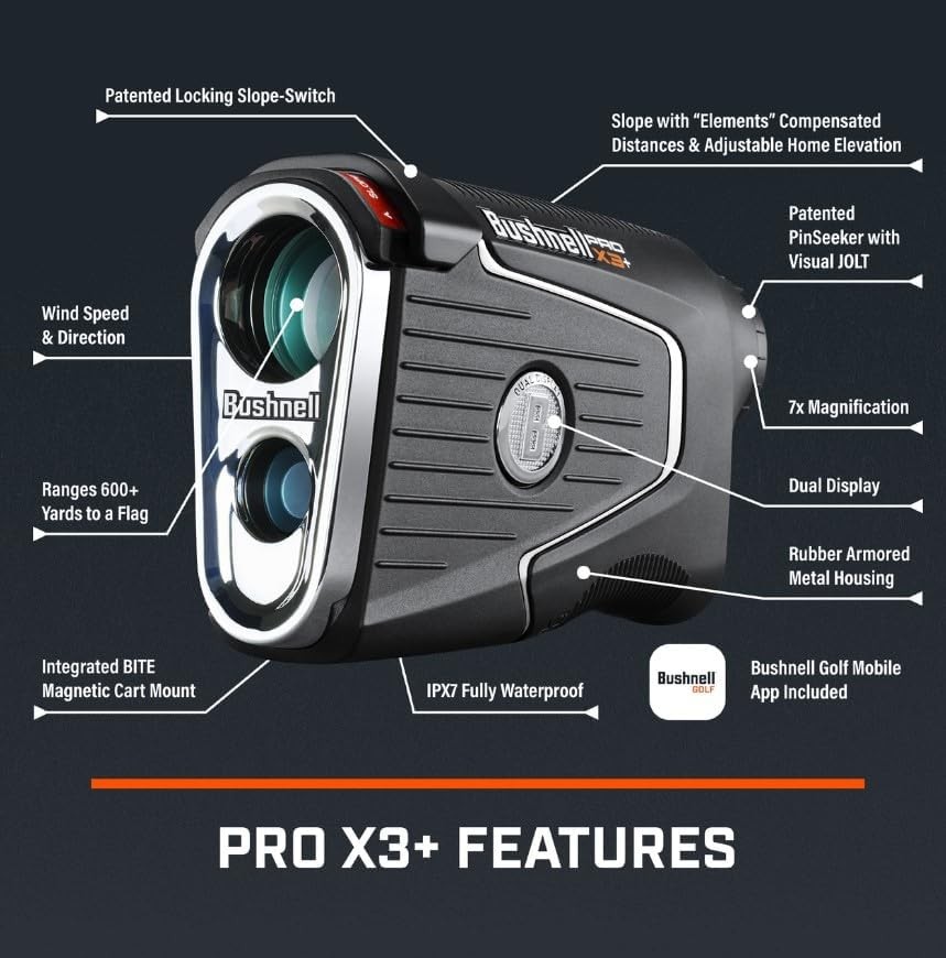 Bushnell PRO X3 Pro X3+ (Plus) Advanced Laser Golf Rangefinder with Included Carrying Case, Carabiner, Lens Cloth, and Selected Wearable4U Bundle