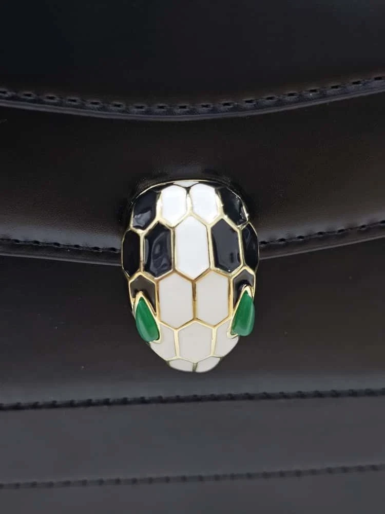 Bvlgari Large Serpenti Forever Square Chain Shoulder Bag Leather Black