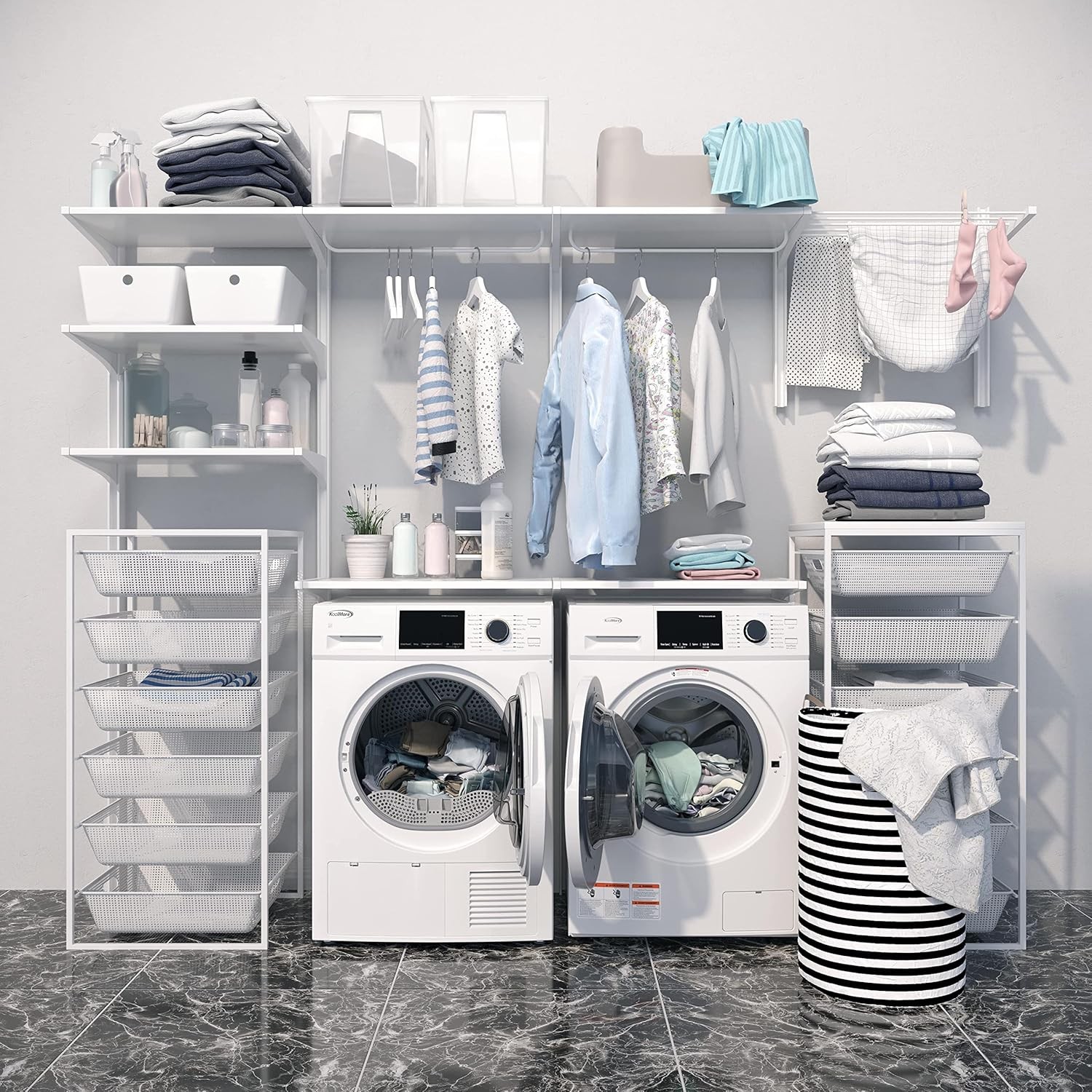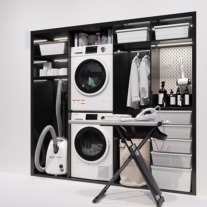 • Stackable– The 23.4” x 24.3” x 33.5 size makes it easier to stack on our similarly-sized washing machine [Model: FLW-3CWH] so you can keep a washer and dryer handy.