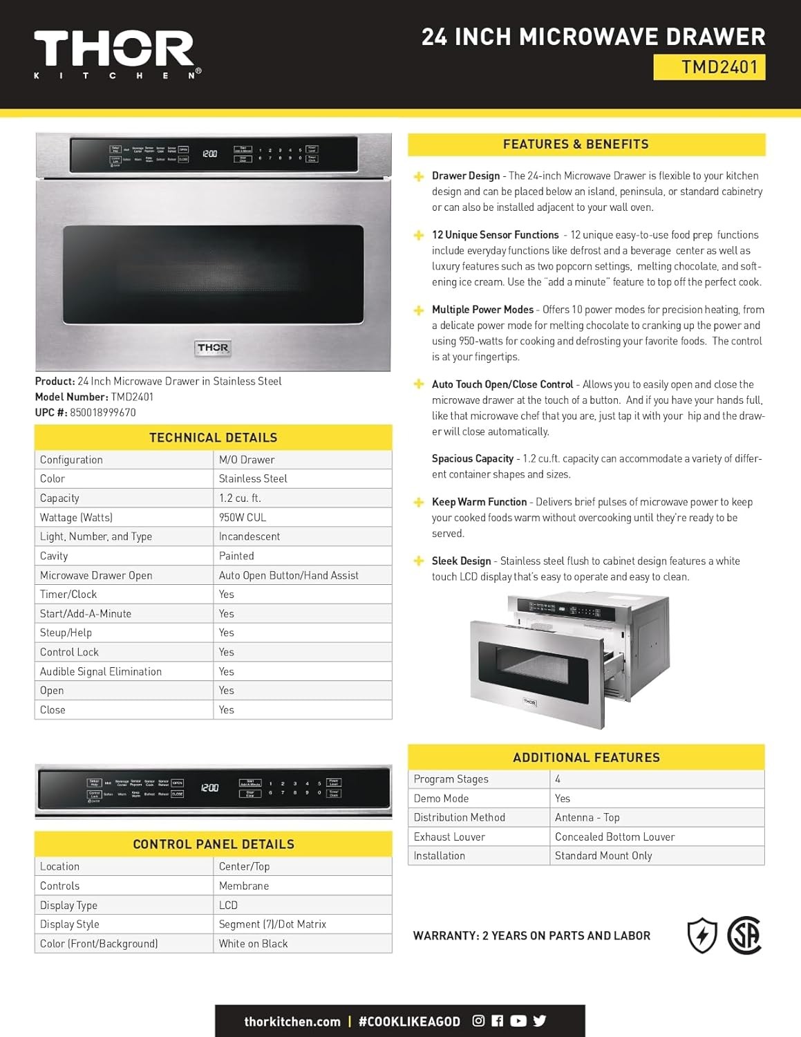 THOR Kitchen Professional 24-Inch Microwave Drawer - Model TMD2401