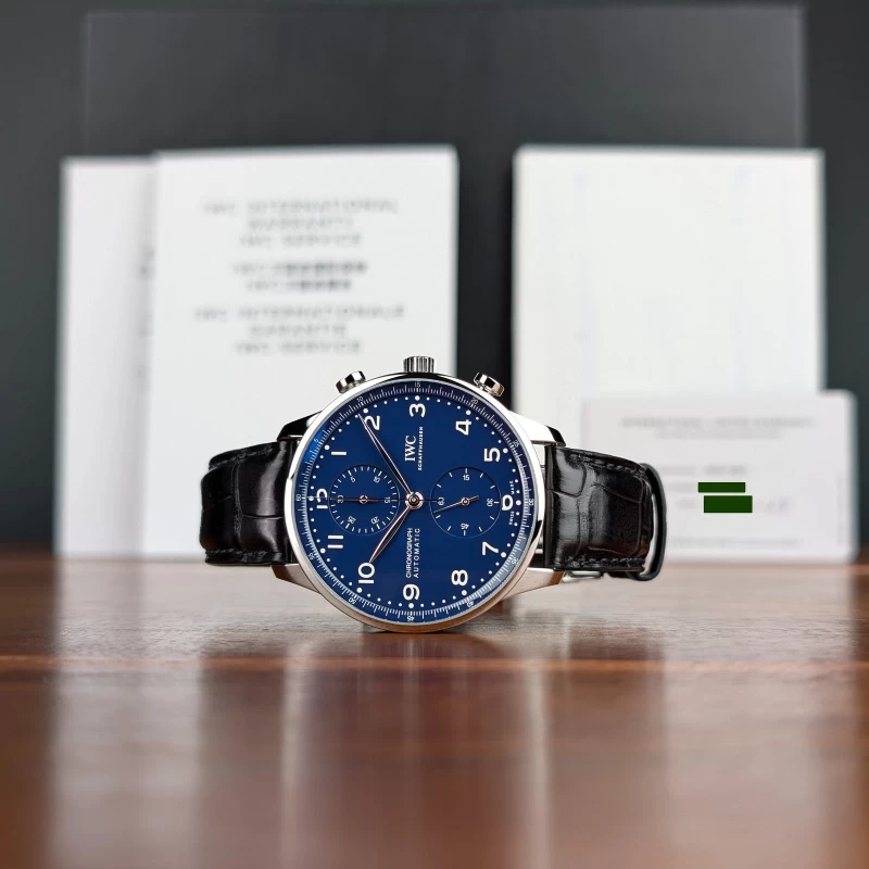 Unworn Complete Set Blue Dial IWC Portuguese Chronograph 150 Years IW371601